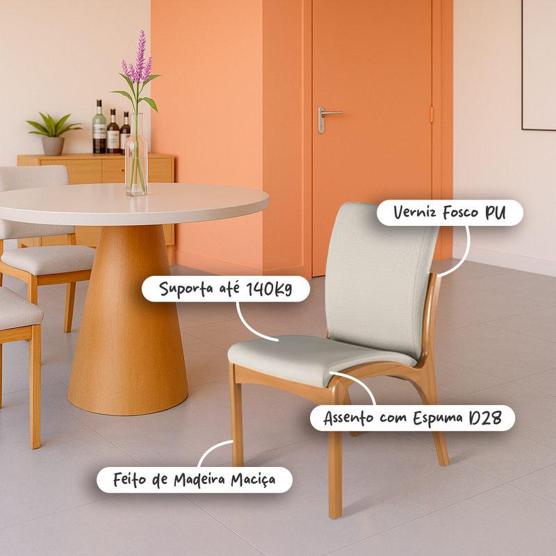 Seu design moderno e elegante é perfeito para complementar a decoração da sua sala de jantar ou espaço de convivência, oferecendo um ambiente aconchegante e convidativo para você e seus convidados. Invista em qualidade e conforto com a Cadeira Madri de Madeira Maciça e transforme seus espaços em verdadeiros refúgios de estilo.